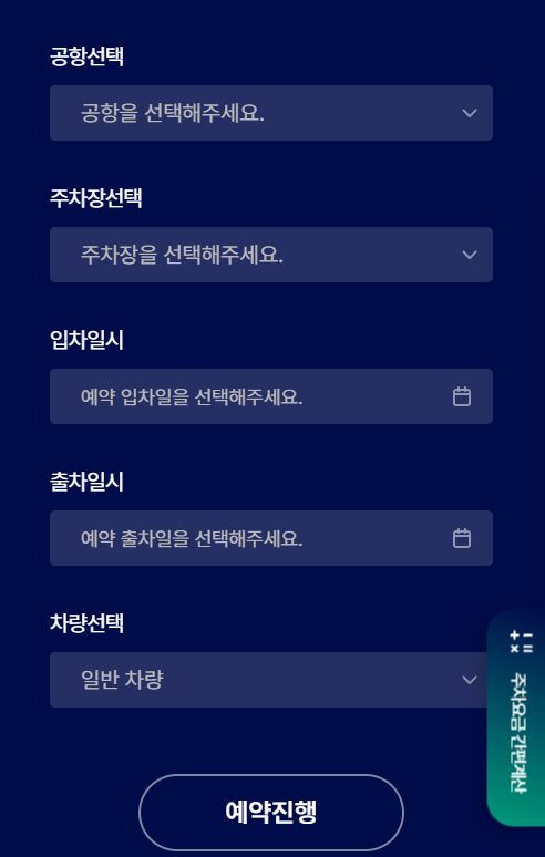 - 입차일시 및 출차일시: 출발과 도착 날짜, 시간을 설정합니다.